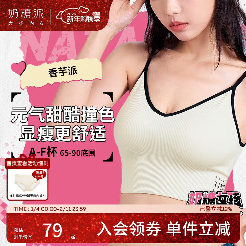 奶糖派香芋派无钢圈背心式内衣紧致小蛮腰大胸显小奶糖女孩青春线 小香白 M (75A-75F,80A-80E)