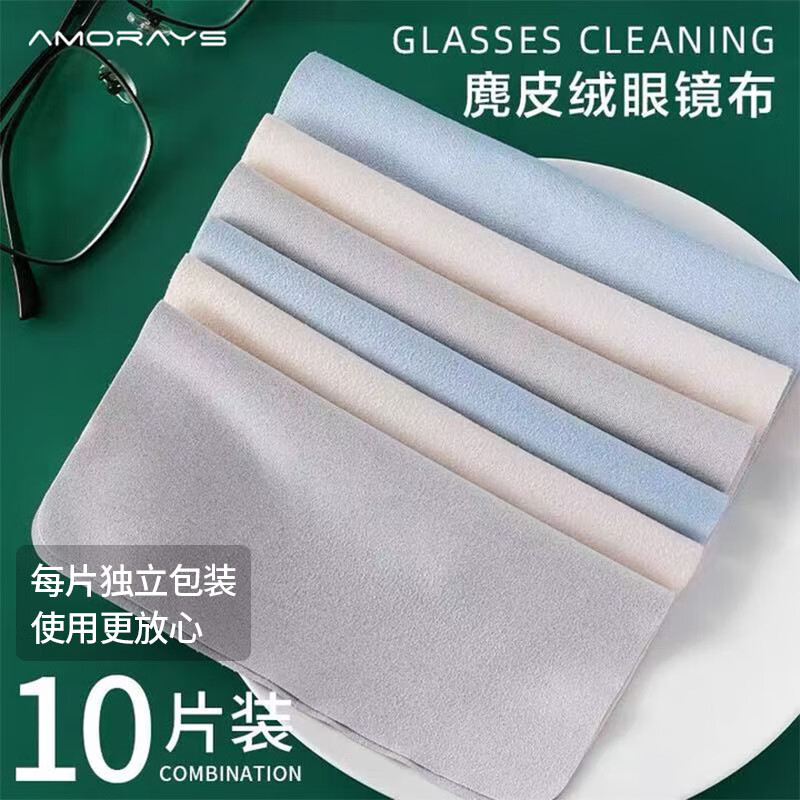 AMORAYS麂皮绒清洁眼睛布擦拭手机屏幕镜片清洁麂皮绒眼镜布10片装开学