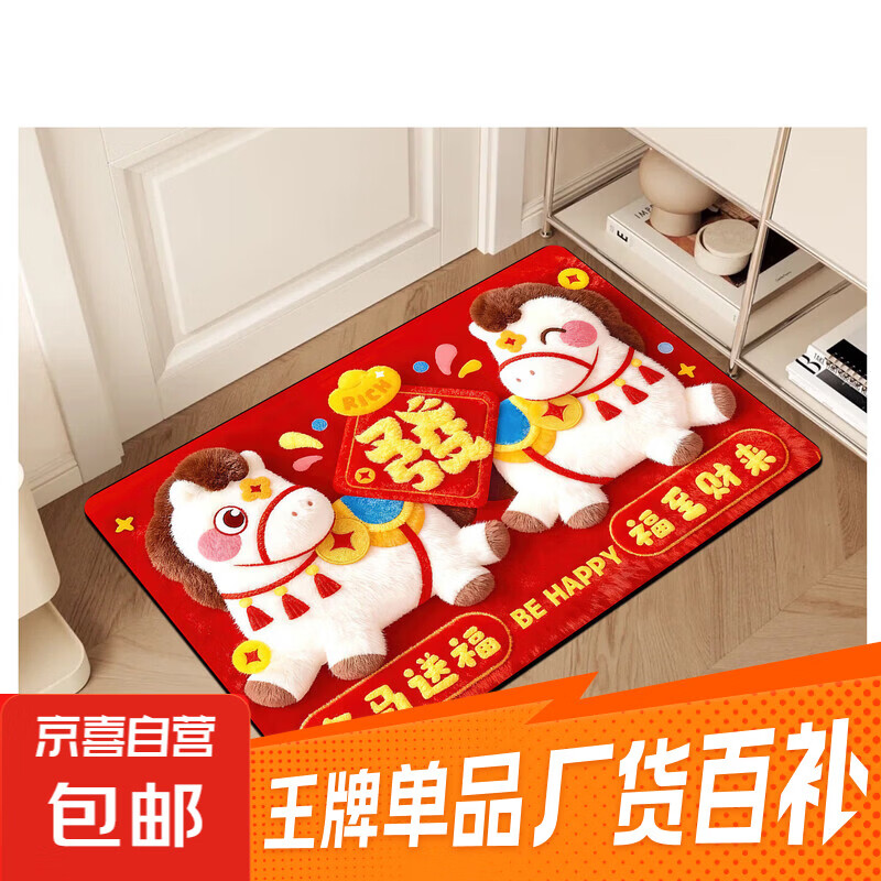 卡通通用汽车脚垫喜庆红色地垫氛围感拉满多场景适用清理简单 喜庆小马福至财来 40cm*60cm