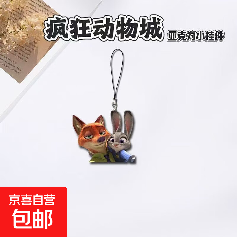 手机饰品疯狂动物城朱迪狐尼克兔双面亚克力手机挂件带垫片高颜值书包水杯钥匙扣挂件卡通可爱礼物 疯狂动物城-款4