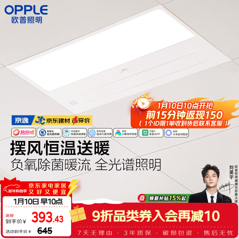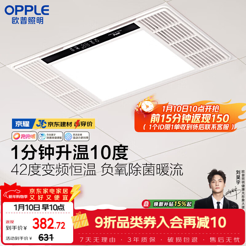 欧普照明(OPPLE)京东集采风暖浴霸 京系列 抱抱暖变频恒温除菌浴霸 京耀