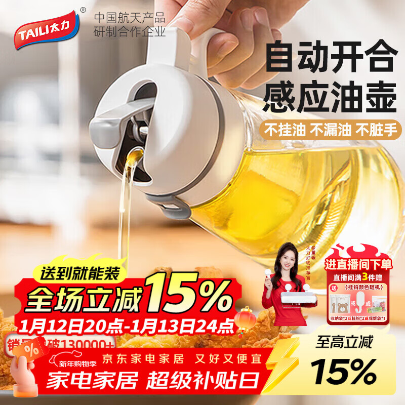 太力自动开合油壶 厨房家用玻璃油瓶不挂油防漏调料酱油瓶650ML