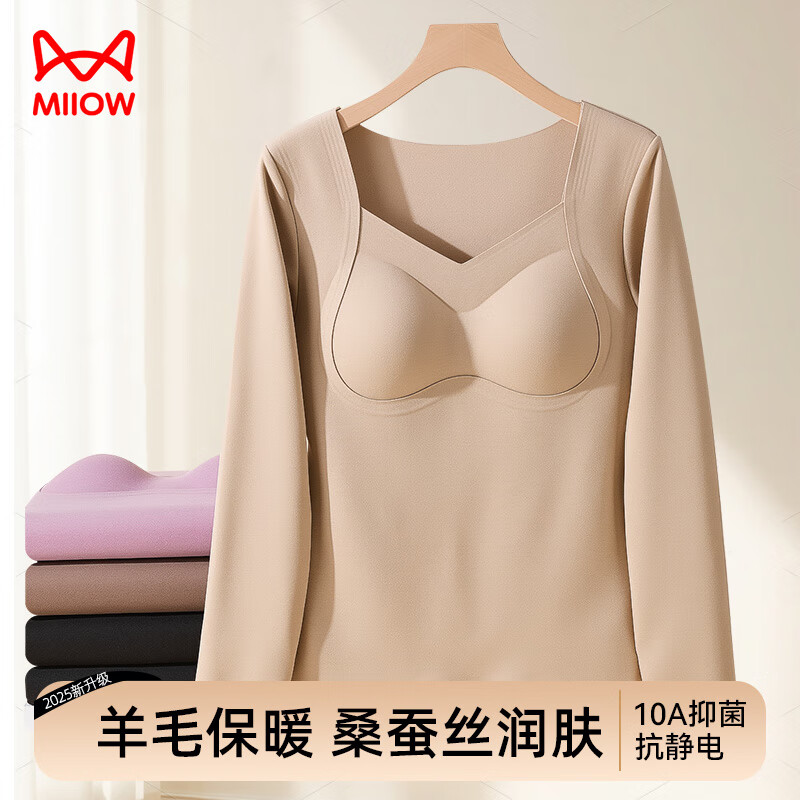 猫人(MiiOW)25年新款粉底液内衣女士保暖内衣女生保暖衣肌底衣带胸垫保暖背心