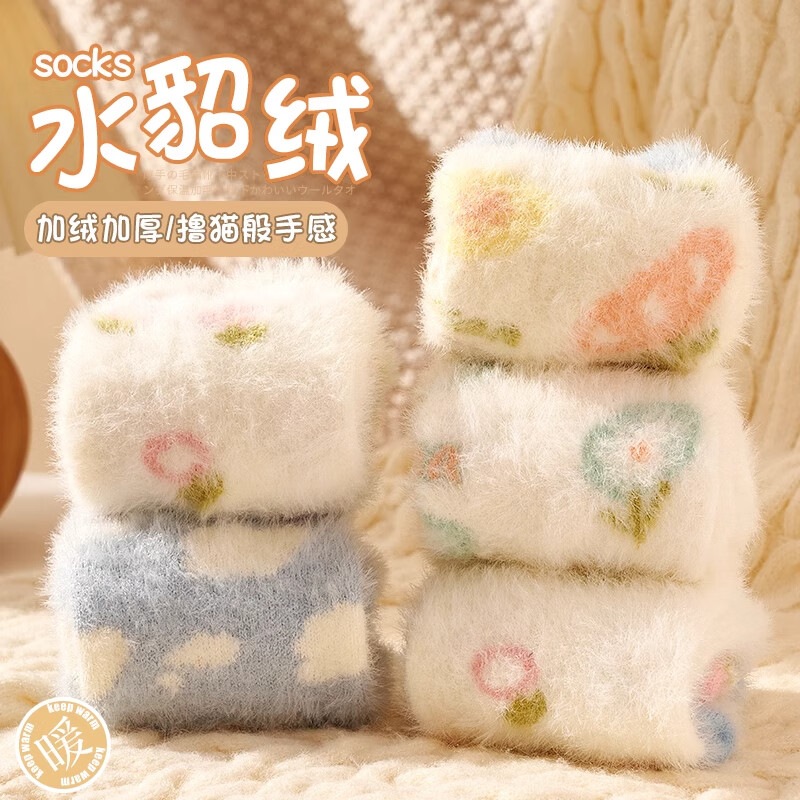 俞兆林4双水貂绒袜子女士毛毛袜冬季厚袜子加绒珊瑚绒地板袜睡眠袜女