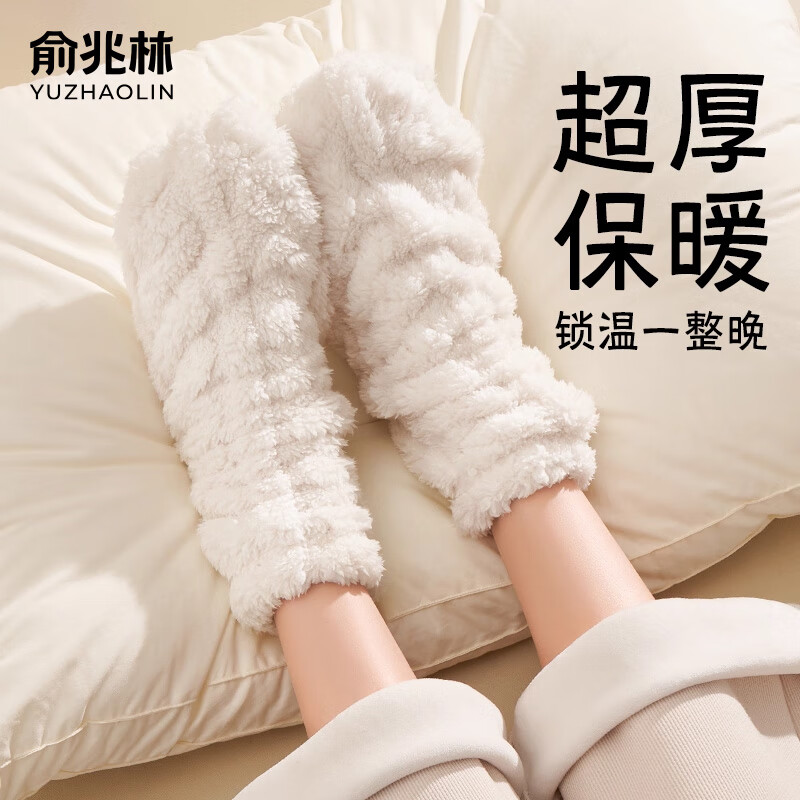 俞兆林2双睡觉袜子男女居家超厚睡眠袜珊瑚水貂绒加绒加厚袜套中筒袜冬