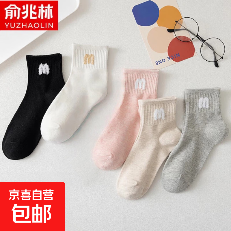 俞兆林10双装袜子女士中筒纯色棉袜秋冬季长筒袜学生袜日系堆堆袜女