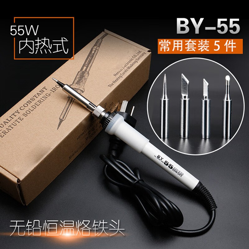 邦远电烙铁套装家用维修锡焊60W工业级电焊笔BY55A可调恒温内热电洛铁 BY55+4个头
