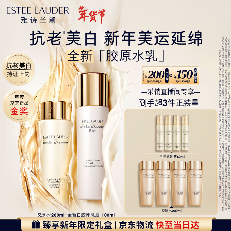 雅诗兰黛【采销直播间】美白水乳套装(胶原水200ml+白胶原乳100ml)护肤品
