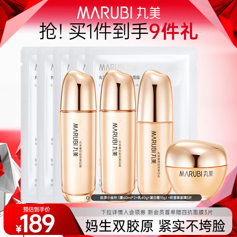丸美双胶原小金针水乳护肤品套装紧致抗皱淡化补水保湿细纹旅行装试用 【超值到手9件】双胶原水乳霜