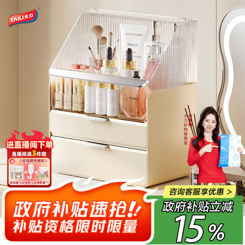 太力化妆品收纳盒超大容量口红面膜箱化妆刷护肤品桌面置物架生日礼物