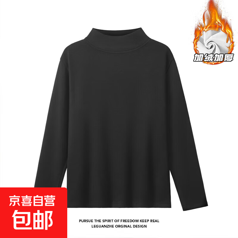 半高领双面德绒纯色打底衫男秋冬季保暖内搭墨绿色长袖卫衣男士潮 黑色 XL 【建议105-120斤】