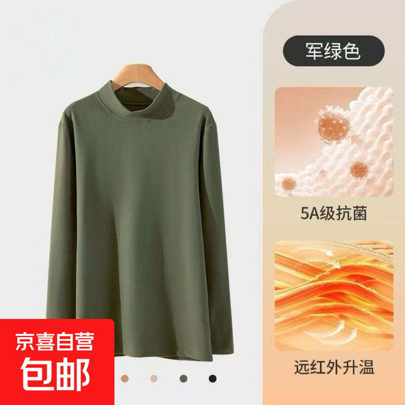 男士半高领磨毛长袖双面德绒秋衣打底衫秋冬季恒温保暖舒适上衣服 墨绿色 130克 L