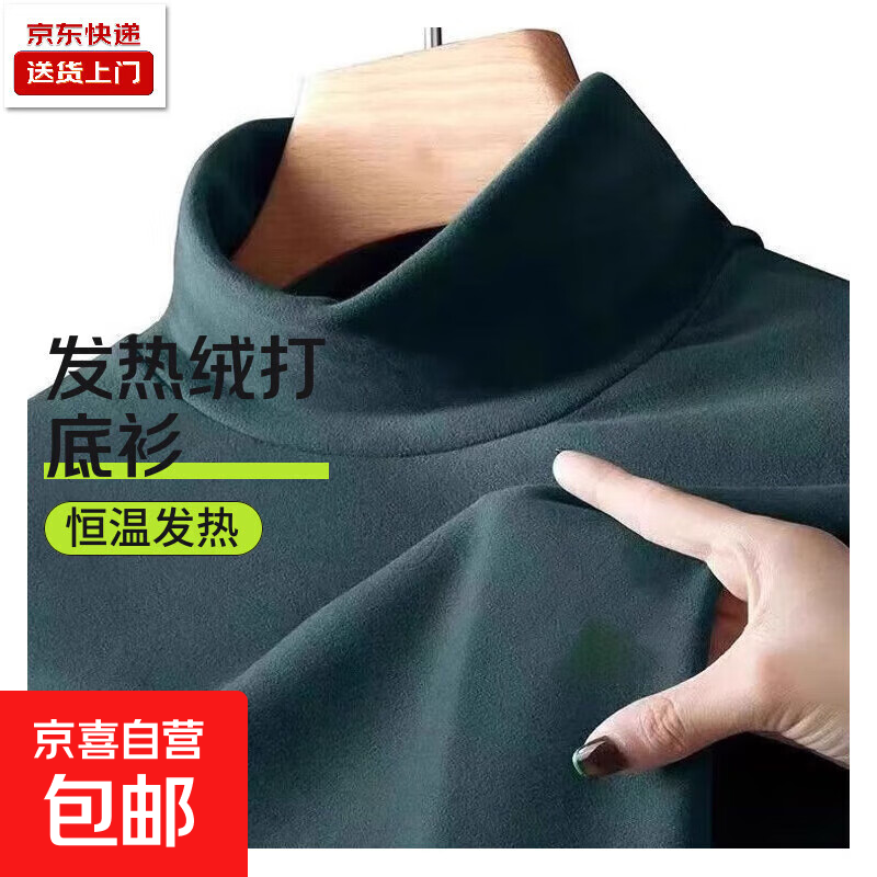 130g德绒秋冬季长袖t恤男士保暖内衣半高领加绒加厚打底衫男内搭 墨绿色 130克面料 3XL