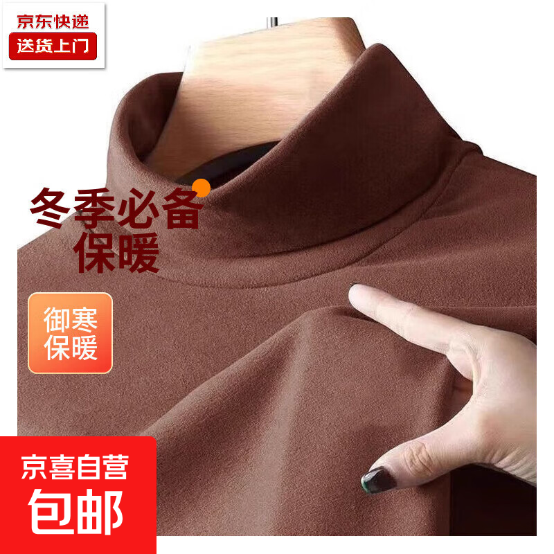 半高领双面德绒纯色打底衫男秋冬季保暖内搭墨绿色长袖卫衣男士潮 咖啡色 2XL 【建议120-145斤】