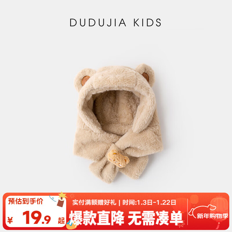 嘟嘟家儿童帽子保暖冬装男童围巾帽子冬款女童洋气卡通宝宝童装 可可棕 1-7