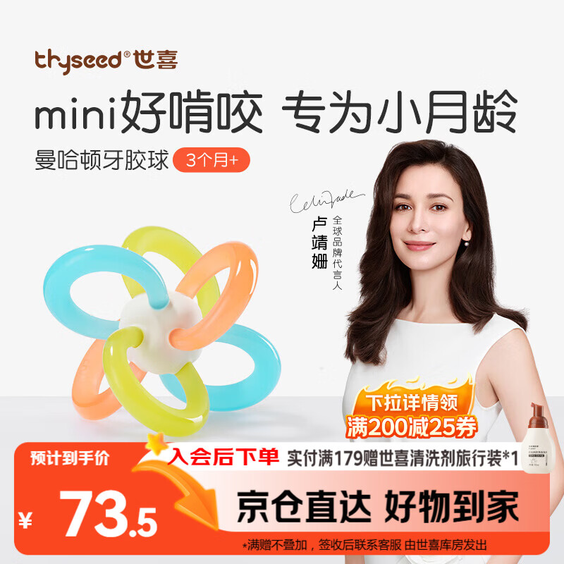 世喜曼哈顿手抓球牙胶婴儿玩具口欲期0-3-6个月可啃咬食品级抓握训练