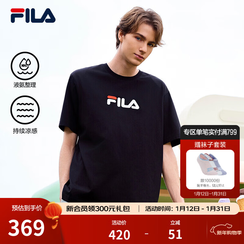 FILA 斐乐官方情侣针织短袖衫2026春新款时尚休闲简约凉感纯棉T恤 正黑色-BK L 175/96A/L