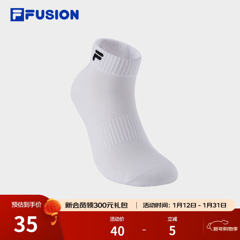 FILA FUSION斐乐潮牌情侣款低腰袜秋新款运动袜简约舒适短袜 标准白-WT M