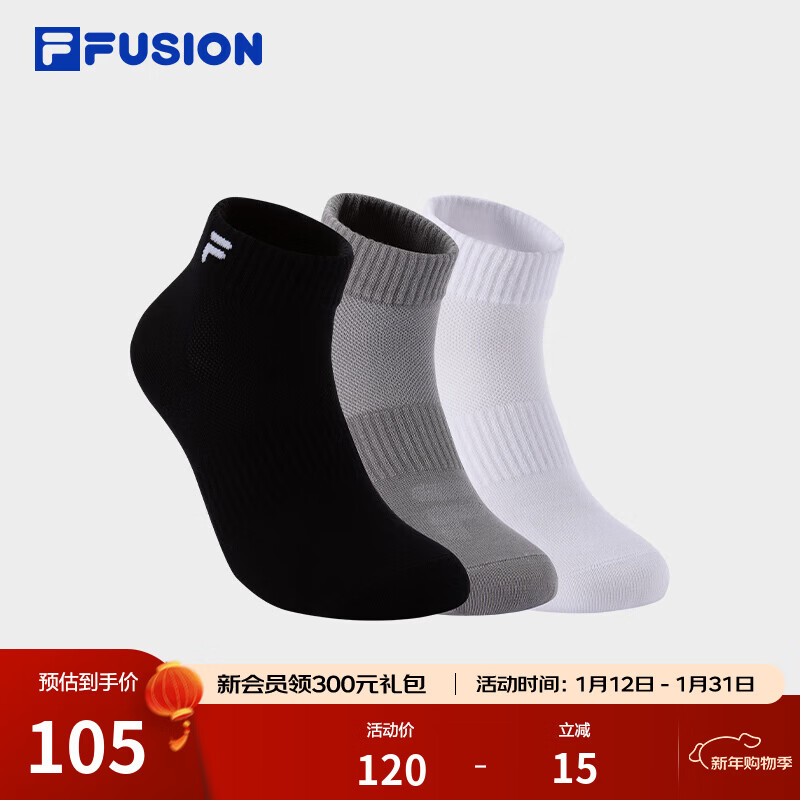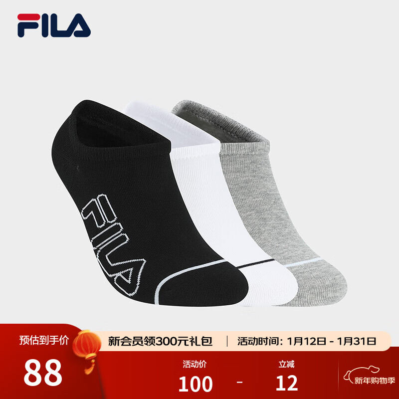FILA FUSION斐乐潮牌情侣款低腰袜套装秋新款舒适短袜三双装 深黑/标准白/合金灰99 S