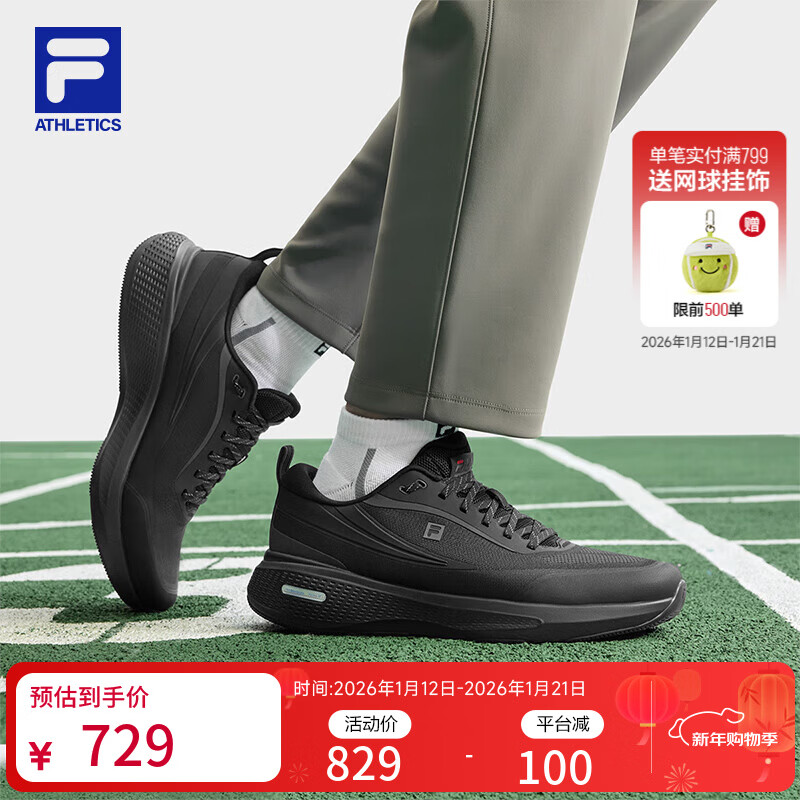 FILA斐乐男鞋运动跑步鞋2026春季新款柔云3轻便舒适健身鞋网面黑色鞋 黑-BK 41