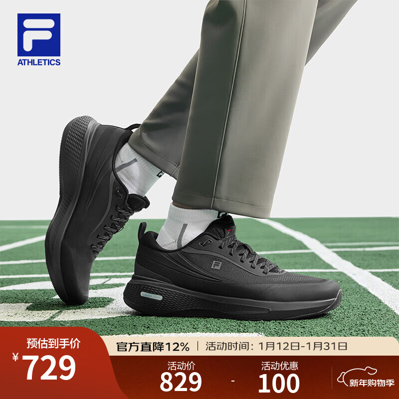 FILA斐乐男鞋运动跑步鞋2026春季新款柔云3轻便舒适健身鞋网面黑色鞋 黑-BK 42