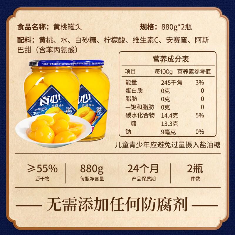 真心黄桃罐头880g*2瓶 对半黄桃水果罐头 糖水饮料水果捞礼盒年货礼物