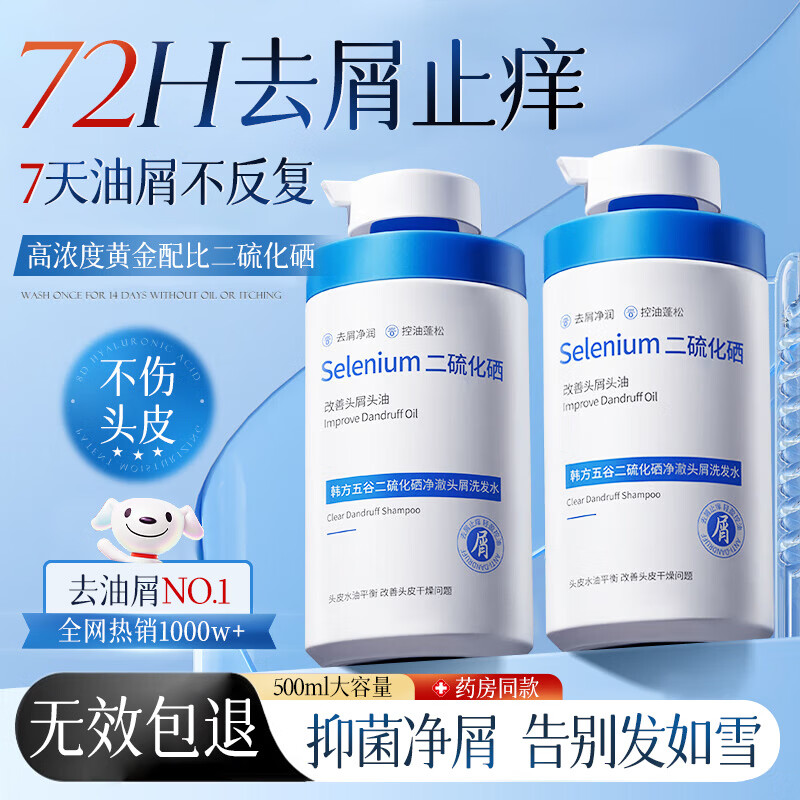 韩方五谷二硫化硒洗发水500ml去屑止痒控油水杨酸毛囊脂溢性洗发液金榜第1