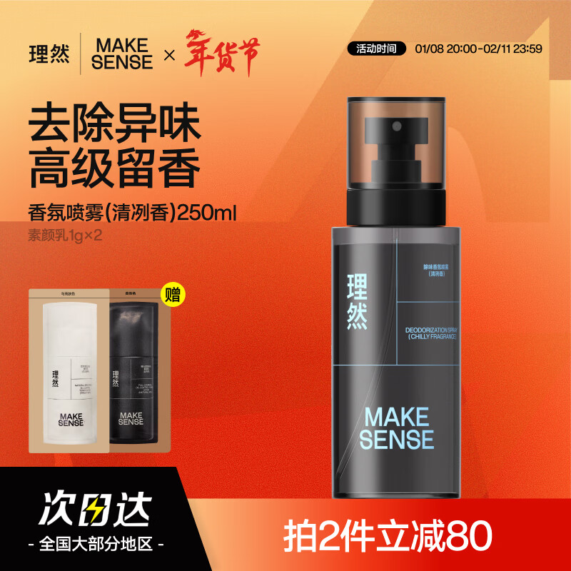 理然男士淡香水除味香氛喷雾持久香水男 生日礼物 送男友 清冽香250ml