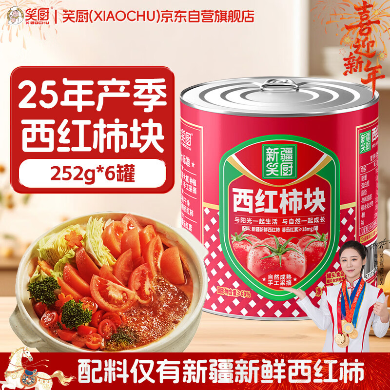 笑厨(XIAOCHU)25年/新疆西红柿块252g*6罐0添加自然成熟新鲜西红柿水果番茄罐头