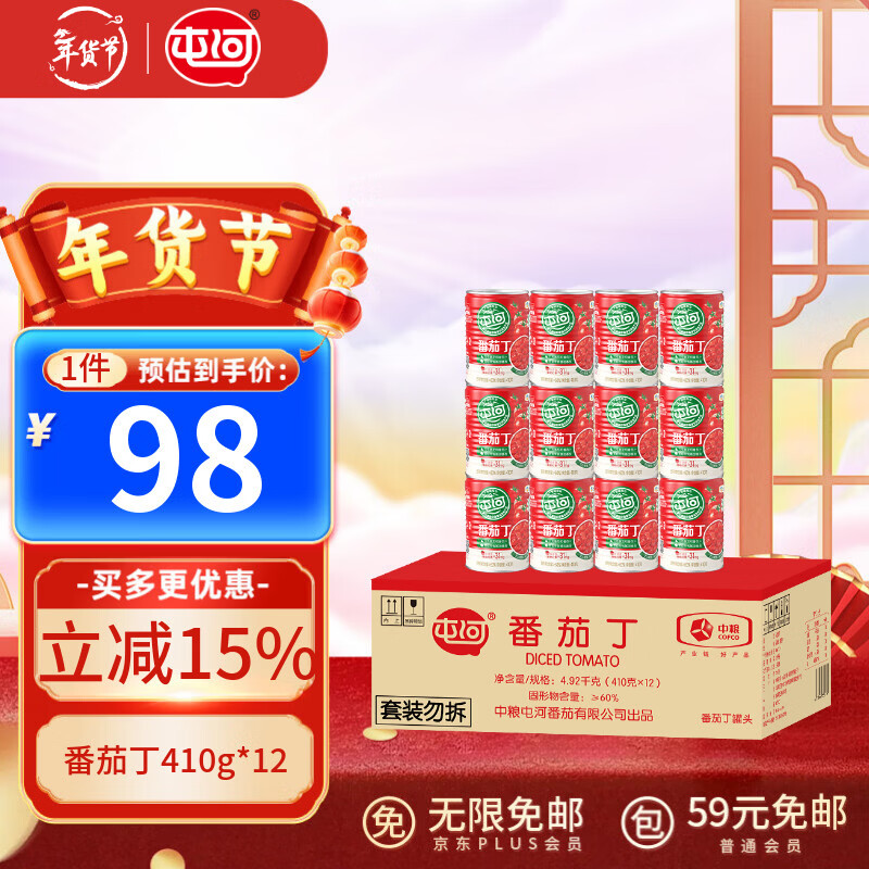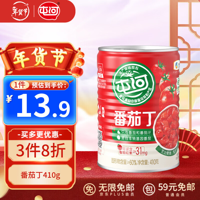 屯河25年新货新疆内蒙番茄丁410g 0添加剂番茄酱西红柿块罐头中粮出品