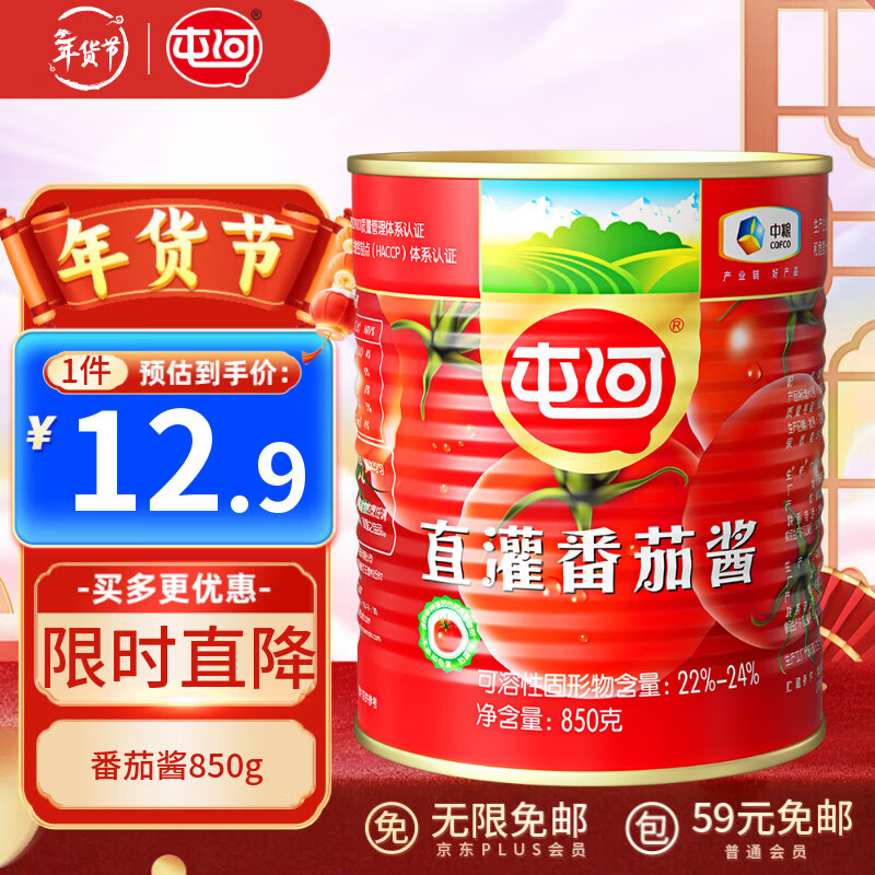 屯河直灌番茄酱 储备罐头 新疆内蒙古番茄膏意大利面酱 850g 中粮出品