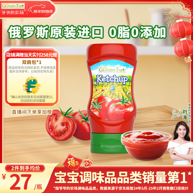 爷爷的农场番茄酱310g 俄罗斯进口儿童意面酱挤压瓶 赠宝宝辅食食谱