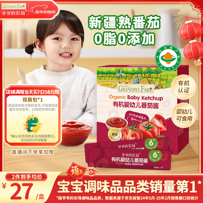爷爷的农场有机婴幼儿番茄酱120g 蘸料调味酱0添加 宝宝辅食