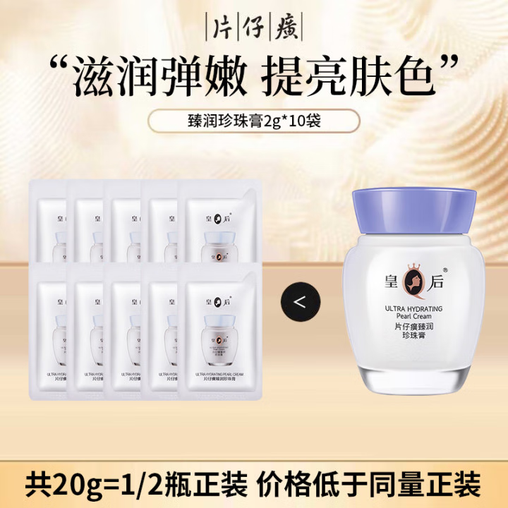 片仔癀【官方直售】皇后牌珍珠霜膏美白祛斑面霜提亮肤色滋润补水男女士 (实惠装美白版)珍珠膏20g*2瓶
