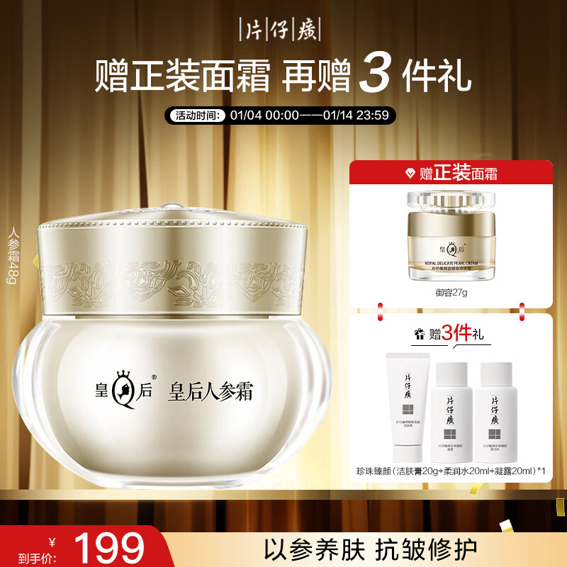 片仔癀皇后御容臻致珍珠膏钻石人参霜补水保湿抗皱淡纹紧致舒缓贵妇面霜 皇后人参霜48g+15g*2