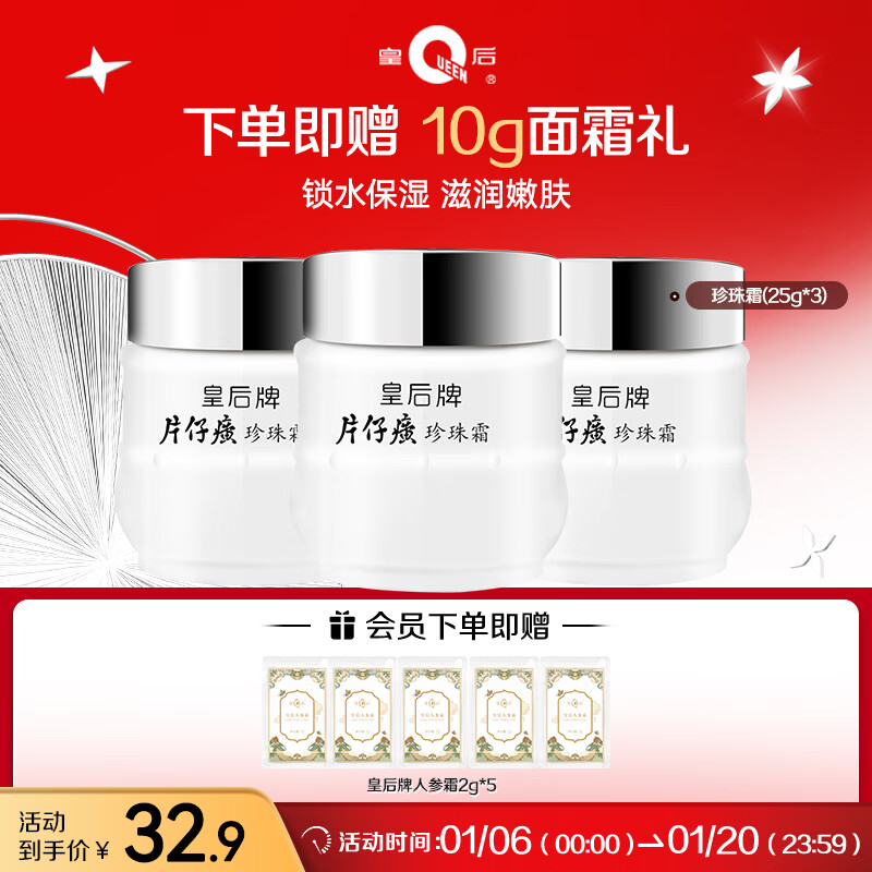 片仔癀皇后牌珍珠霜25g*3补水保湿擦脸霜面霜新年礼物