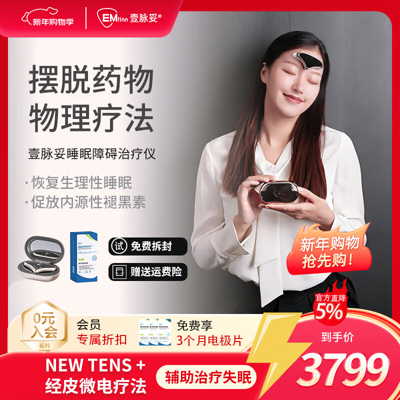 壹脉妥智能睡眠仪偏头痛理疗仪家用深度睡眠神器头部按摩器送客户爸妈高端生日礼物 流沙金礼盒款+送6组电极片【免费试用7天】