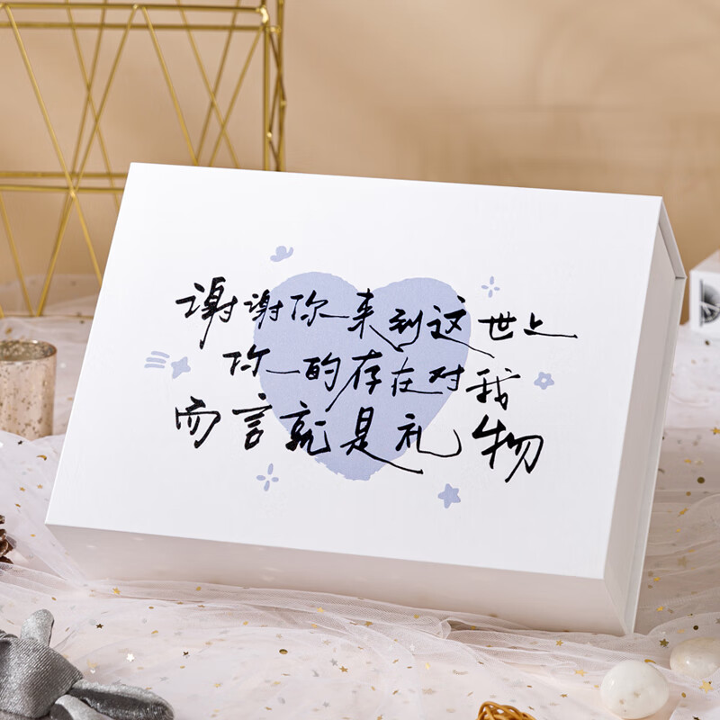 静闲居礼盒空盒礼物盒新年礼品盒包装盒大号高级感拉菲草生日礼物送女生 香槟色小号礼盒【盒子+拉菲草】