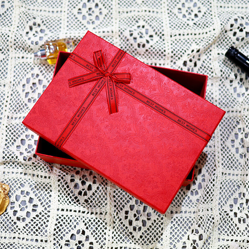 威尔基礼物盒礼盒空盒高级感礼品盒包装盒生日新年礼盒大号拉菲草送女生 红色礼品包装盒【28*19.8*9】 带拉菲草+贺卡