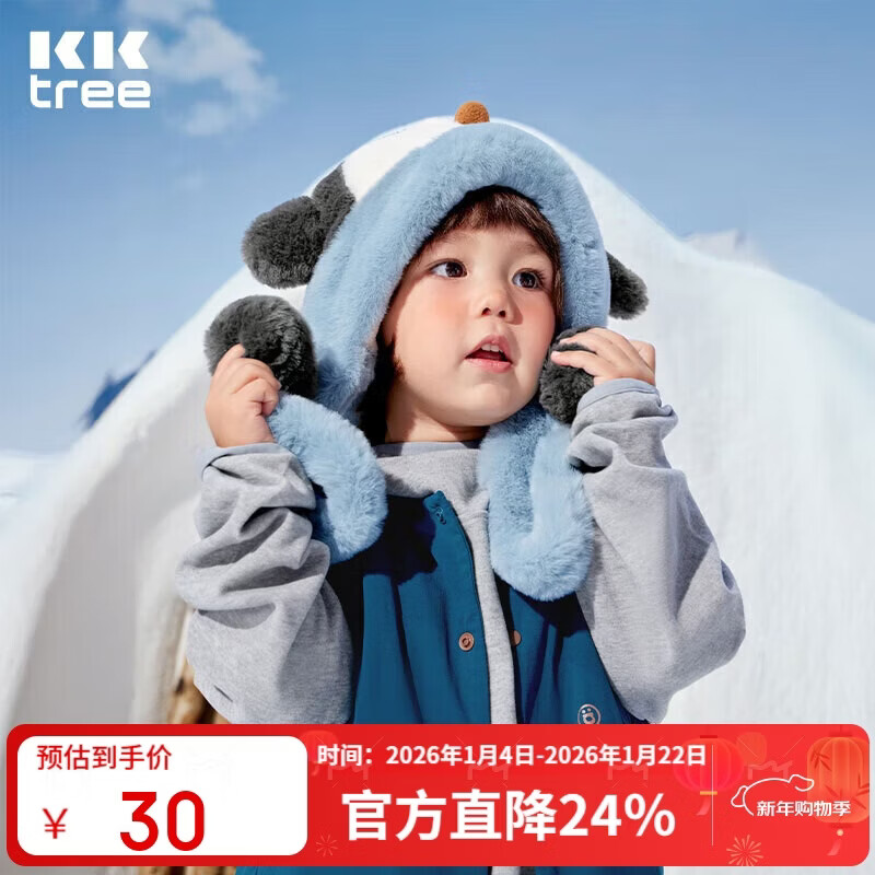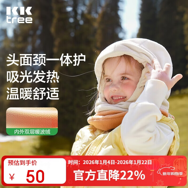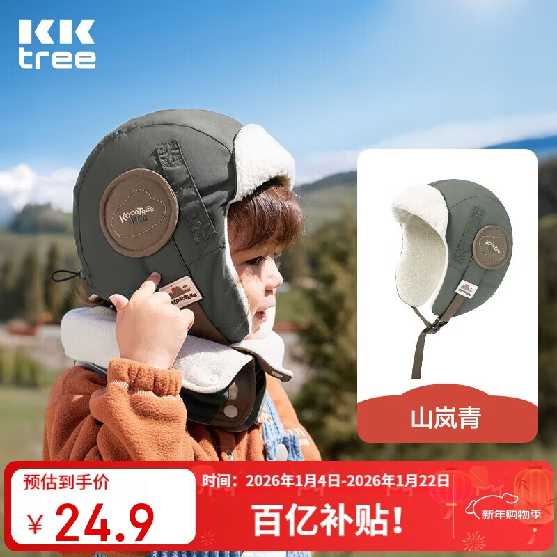 Kocotreekk树儿童帽子加厚保暖男女孩头面颈一体护帽撞色设计