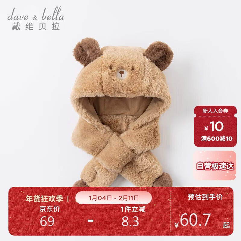 戴维贝拉儿童帽子男童女护耳帽针织内里萌趣造型宝宝可爱冬季