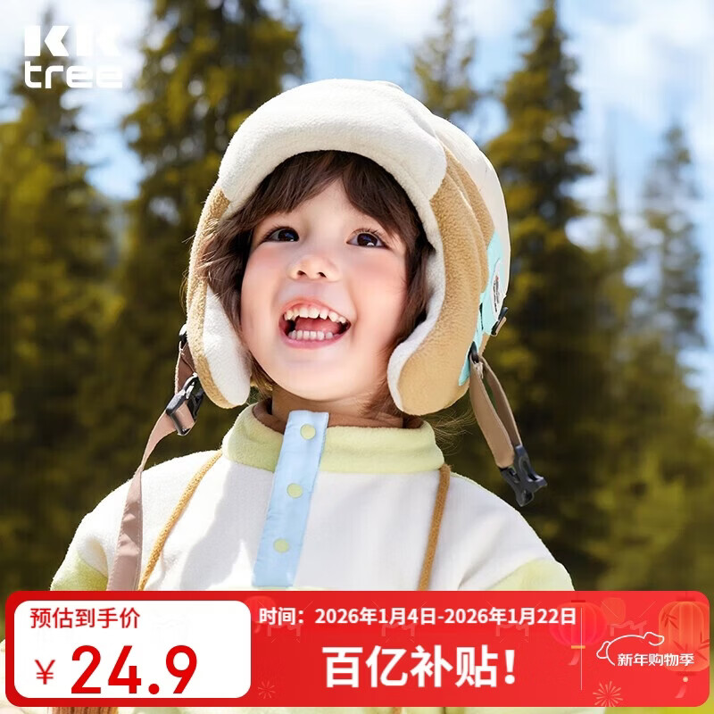 Kocotree【新年礼物】kk树儿童帽子防风护耳秋冬男童雷锋帽女孩保暖飞行员