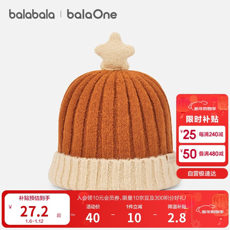 巴拉巴拉balaOne儿童帽子男童女童比尼帽舒适保暖五角星装饰208425160207