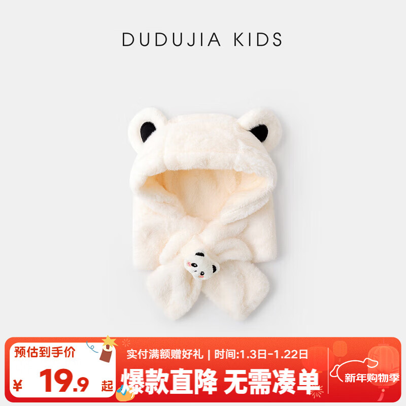 嘟嘟家儿童帽子保暖冬装男童围巾帽子冬款女童洋气卡通宝宝童装 奶油白 1-7