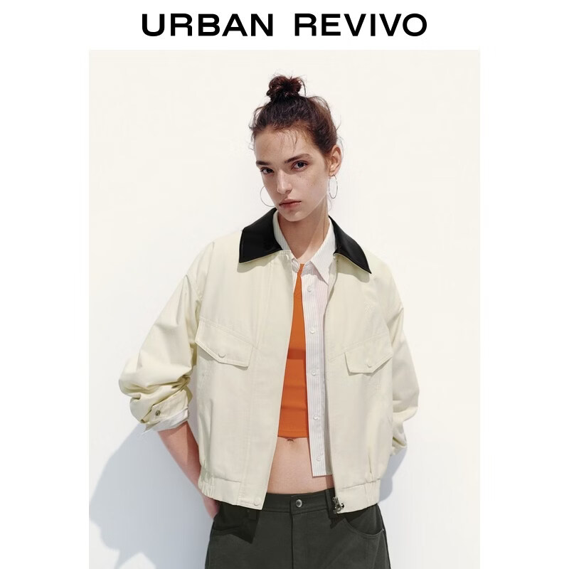 UR2026春季新款女装复古学院风刺绣拼接翻领外套UYY150062 浅黄 S
