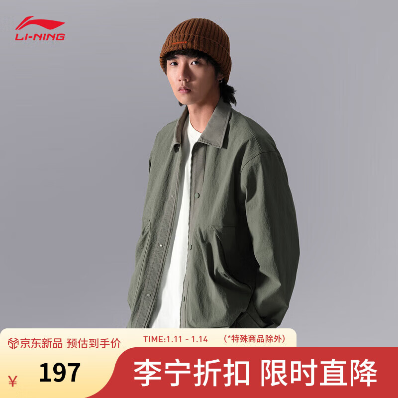 李宁户外CF溯|运动外套男子秋冬季cityboy潮流拼接宽松翻领夹克 螺烟绿-1 XL