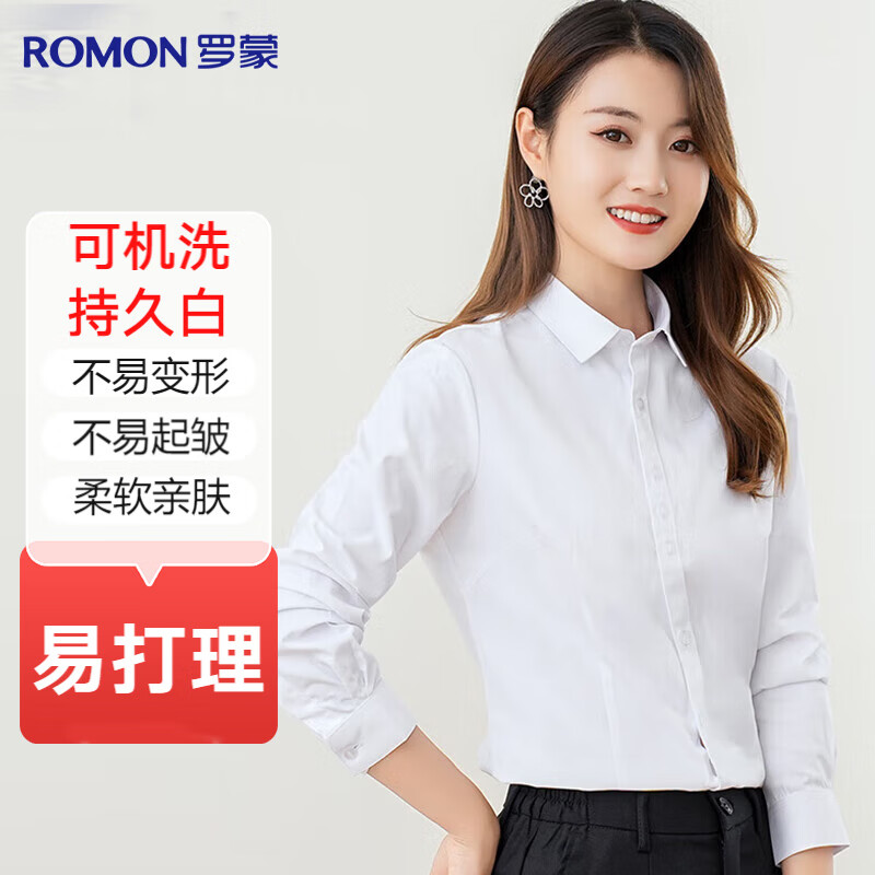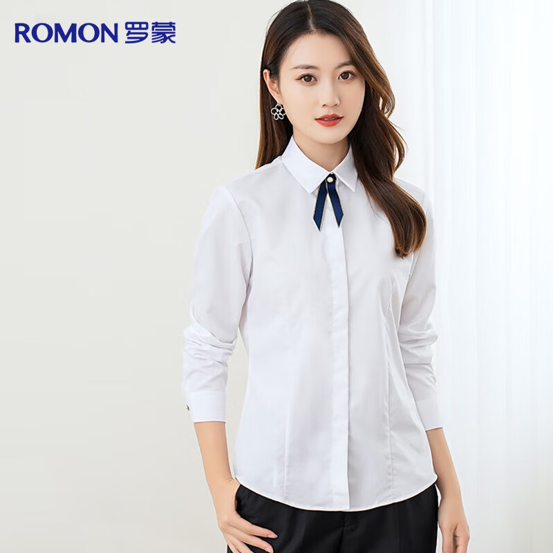罗蒙棉质长袖衬衫女士四季职业装修身商务打底工装衬衣面试酒店工作服