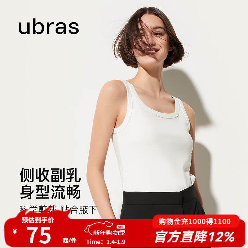 ubras简约细肩带修身背心带吊带打底罗纹高弹柔软透气内搭 白色 M