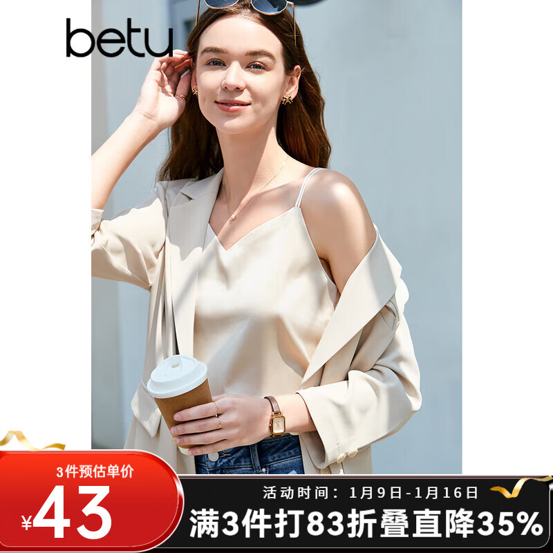 betu百图女装吊带衫打底背心内搭背心外穿V领无袖吊带背心女2204T82 杏色 XS