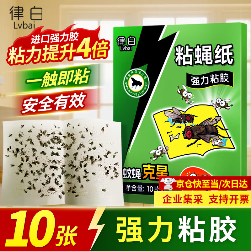 律白苍蝇贴10张强力粘蝇纸胶果蝇小飞虫诱捕器灭蝇器杀蝇神器粘蚊虫板